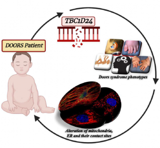 Des mutations dans la protéine TBC1D24 causent le syndrome DOORS associé à la surdité, l’onycho-ostéodystrophie, un retard mental et des convulsions chez les personnes atteintes. Bien que TBC1D24 joue un rôle dans le transport vésiculaire, son rôle exact et le mécanisme expliquant son impact sur le syndrome DOORS restent à élucider, rendant difficile l’élaboration de traitements. Nos données récentes en collaboration avec Philippe Campeau (Ste-Justine) suggèrent que TBC1D24 est présente dans les sites d’interactions entre les mitochondries et le réticulum endoplasmique (MAMs) d’où elle régule la dynamique mitochondriale, suggérant un rôle potentiel de TBC1D24 dans la fonction des mitochondries. Cette possibilité sera explorée en mettant en commun l’expertise du Dr Germain (mitochondries) et du Dr Campeau (TBC1D24), afin de mieux comprendre comment des mutations dans TBC1D24 mènent au syndrome DOORS. Nous allons caractériserons donc fonctionnellement l’effet des variants TBC1D24 associés au syndrome DOORS sur les mitochondries, le réticulum endoplasmique et leurs sites de contacts.